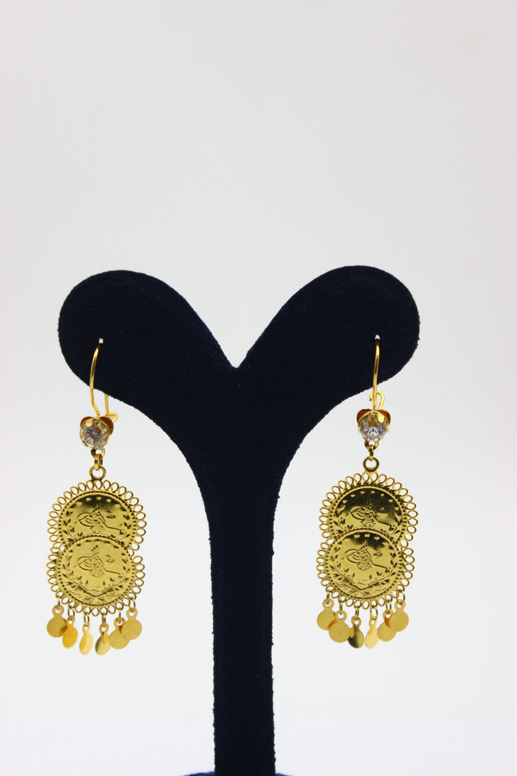 Geleneksel Osmanlı motiflerinden ilham alınarak tasarlanan bu 14 ayar altın küpe, zarafeti ve tarihi dokuyu bir araya getiriyor. Küpenin üzerinde yer alan Osmanlı tuğrası detayı, antik bir estetik sunarken modern takı dünyasında da öne çıkıyor. Parlak altın rengi ve sarkıt tasarımı, her hareketinizde zarif bir ışıltı yayar. Özel günlerde şıklığınızı tamamlayacak bu küpe, aynı zamanda sevdiklerinize unutulmaz bir hediye seçeneği olarak sunulabilir. Hem geleneksel hem de modern kombinler için mükemmel bir parça!