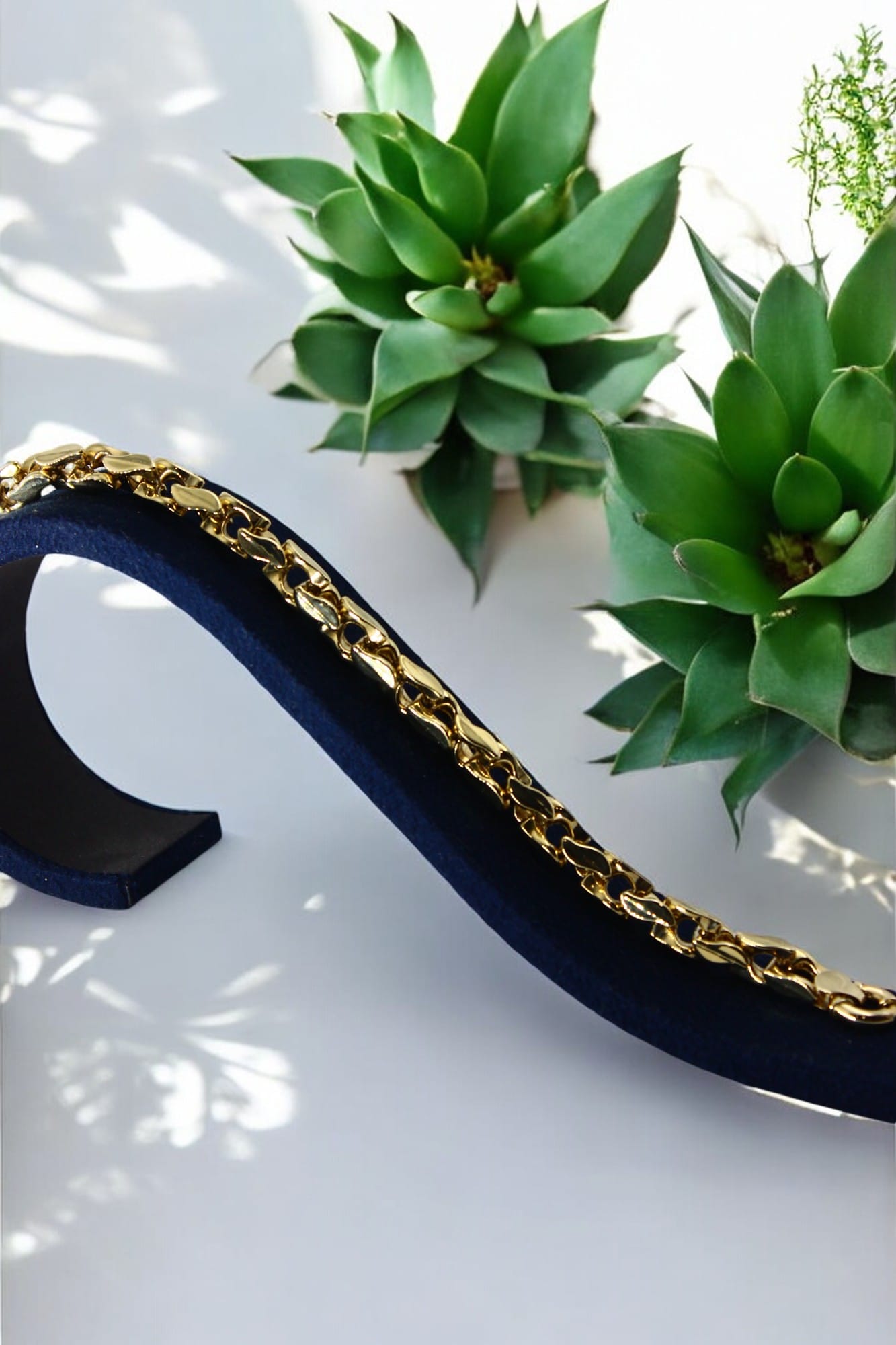 Kullanılabilirlik: Stokta VarBu şık ve modern tasarımlı üç renkli bileklik, sarı, beyaz ve pembe altın tonlarının zarif birleşimiyle öne çıkıyor. Örgü şeklindeki zincir detayları, bilekliğe hem zarafet hem de dikkat çekici bir görünüm kazandırıyor. Günlük kullanımda ya da özel davetlerde stilinize sofistike bir dokunuş katmak için mükemmel bir tercih.